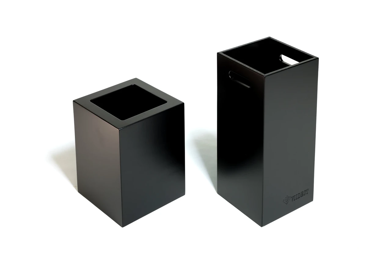 Elegantne puidust prügikast, mis on valmistatud vastupidavast vineerist ja viimistletud sügavmusta tooniga. Koosneb kahest omavahel lukustuvast osast ja sobib ideaalselt kasutamiseks prügikastina või stiilse panipaigana.