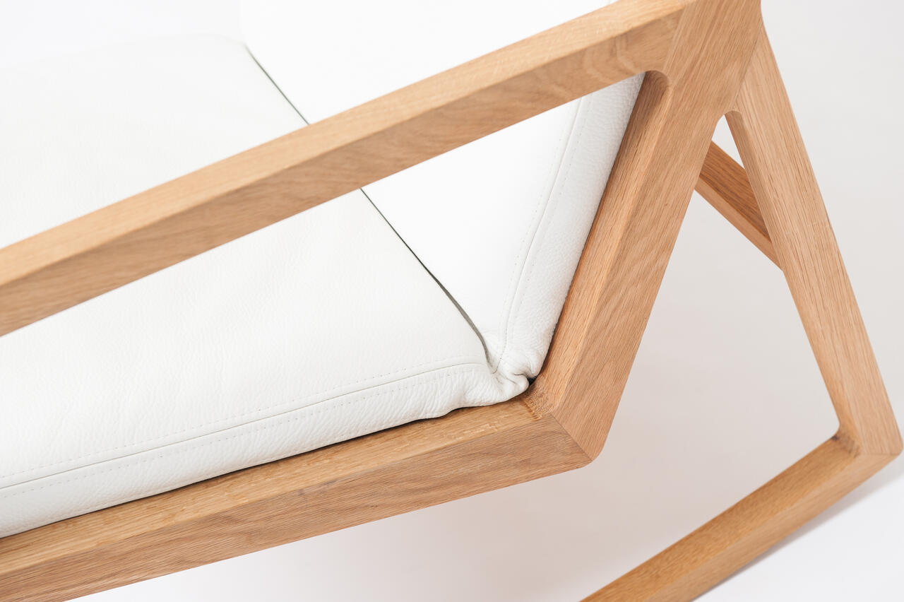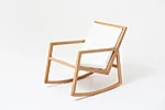 Crafted from solid wood in its natural tone, this rocking chair reflects the calm and simplicity of Scandinavian design. The warm wood grain and balanced form create a timeless piece that invites relaxation in any interior.