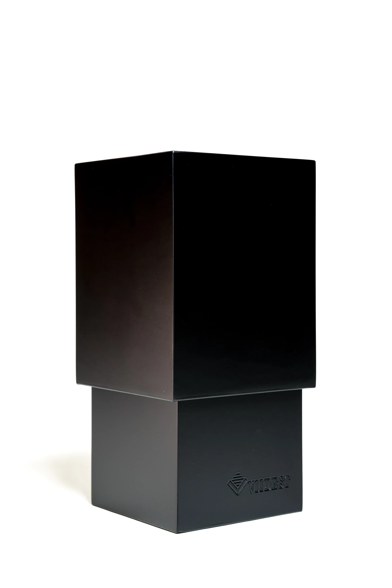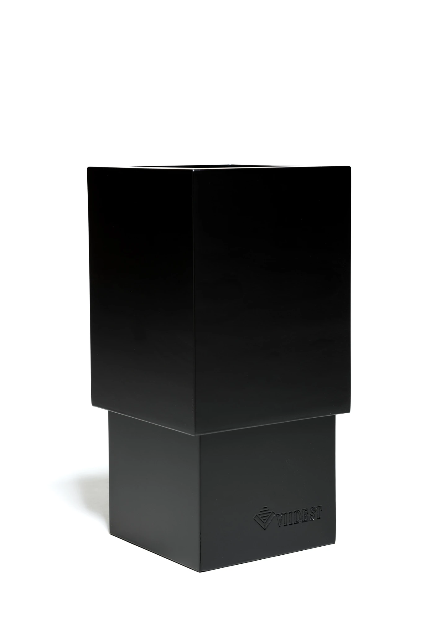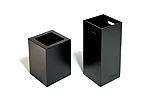 A sleek wooden waste bin made from durable plywood and finished in a deep black tone. Composed of two interlocking parts, it’s perfect for use as a trash bin or stylish storage piece.